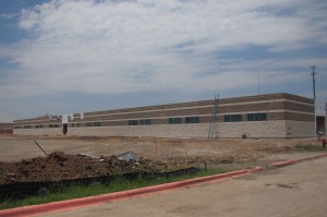 The 18,088 square foot single-story middle school facility is now approximately 65% complete and is scheduled to be finished by mid-September. Due to the occupancy sequencing required by the District, the middle school project was started first. This facility will provide for 13 standard classrooms, a science classroom with prep room, administrative office space, book storage, computer server room, janitor’s area, and restrooms for students and staff. The all masonry exterior will match the existing high school and features a parapet wall profile and a radius metal canopy at the entrance. The site work elements include curb and gutters, a 64 space parking lot, sidewalks, and all the utilities.