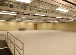 To accomplish this, Ramtech utilized two high efficiency Trane self-contained roof-top units providing 47.5 tons of conditioned air to feed 18 variable air volume boxes. The units feature variable frequency drives and multi-stage compressors that are controlled by a Trane digital controls system that is connected to a base-wide Energy Management Control System (EMCS) utilizing an open implementation of the LON operating system. Over 4,500 square feet of raised access flooring was installed in the building to both accommodate the data wiring and 79 Dell Server Racks which are cooled by a dedicated 50-ton liquid cooled chiller with back-up.