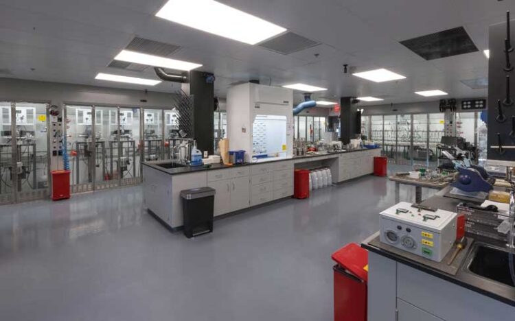 Description: Testing lab with 10 walk-in vent hoods and control room and gas storage area