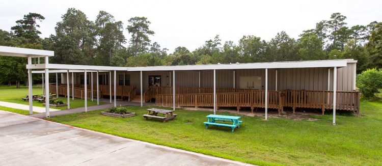 Ramtech constructed this 8,820 square foot relocatable modular building for the MOSAIC 18+ transition program located at Humble ISD’s Community Learning Center complex. The facility provides space for the district’s innovative curriculum that prepares special education students with self-determination and self-advocacy skills for independent living, employability, recreation and leisure, and life long learning. The building features eight special use classrooms, two fully-simulated efficiency apartments with kitchens and showers, a large conference room, a retail store, and administrative office space. Designed to meet the Houston-area 110 mile per hour wind load specification, the exterior utilizes R-Panel metal siding and extensive canopies that extend to the main structure.