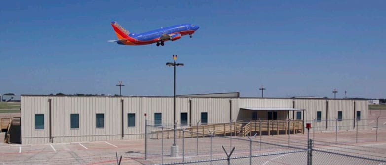 Part of a $519 million capital improvement project at Dallas’ Love Field, this 10,752 square foot facility is comprised of two buildings that sit adjacent to each other on a pad-on-grade foundation atop the existing concrete. Separated by a two-hour site installed firewall, the modular buildings provide temporary administrative and executive office space for Southwest Airline’s to use as they manage Love Field’s terminal and gate expansion program. With extensive experience in managing airport improvement projects, Southwest selected Ramtech from among several other modular companies to supply the buildings which feature nine foot ceiling heights and VCG walls in the administrative office and a textured and painted interior in the executive suite.
