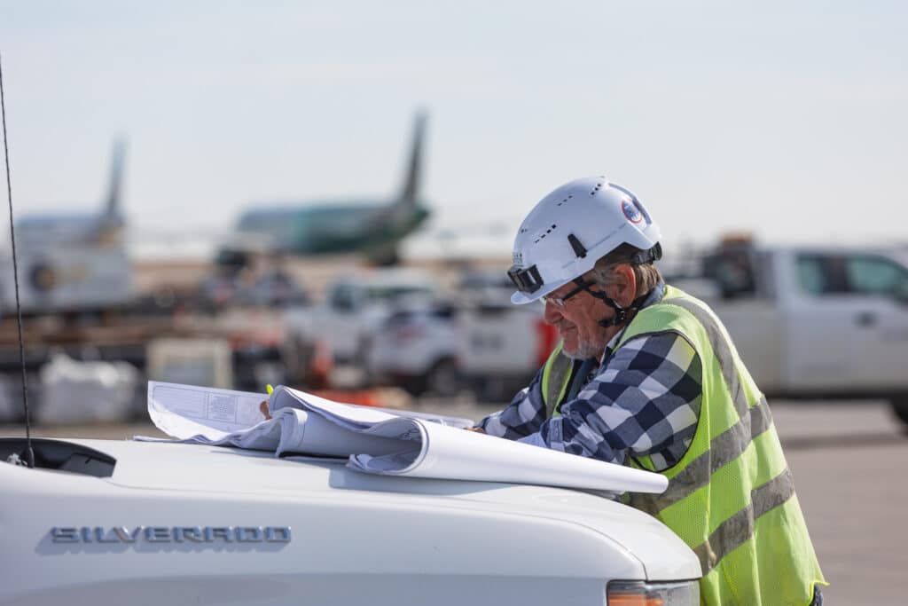 The Type II modular building was comprised of thirty-six 52-foot modules with open web steel trusses and perimeter structural and sub-floor shear walls which were oriented end-to-end to provide a 250 foot clear span facility that sits atop a proprietary stacked CMU pier foundation which was bonded to the existing tarmac surface. The industrial metal siding provides a clean exterior look with large windows and white and gray metal siding to match the original modular building and complement the sculpted canopy design of the adjacent DIA permanent structure. The building meets the standards set for the FAA’s compliant passenger gate waiting areas, including a 20-foot-wide continuous walkway and space for high-stooled charging workstations.