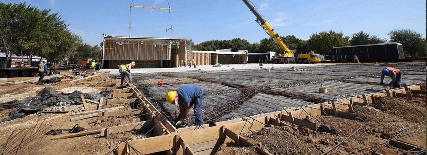 Modular Construction Slab on Grade combines the best of both onsite and offsite construction by bringing together the speed and efficiency of prefabricated buildings with the quality and appearance of site applied interior and exterior finishes. We achieve this by employing simultaneous construction tracks. At the same time a site-specific, engineered reinforced concrete slab-on-grade foundation is constructed on the building site, the fabrication of the building sections are taking place in our manufacturing plant.